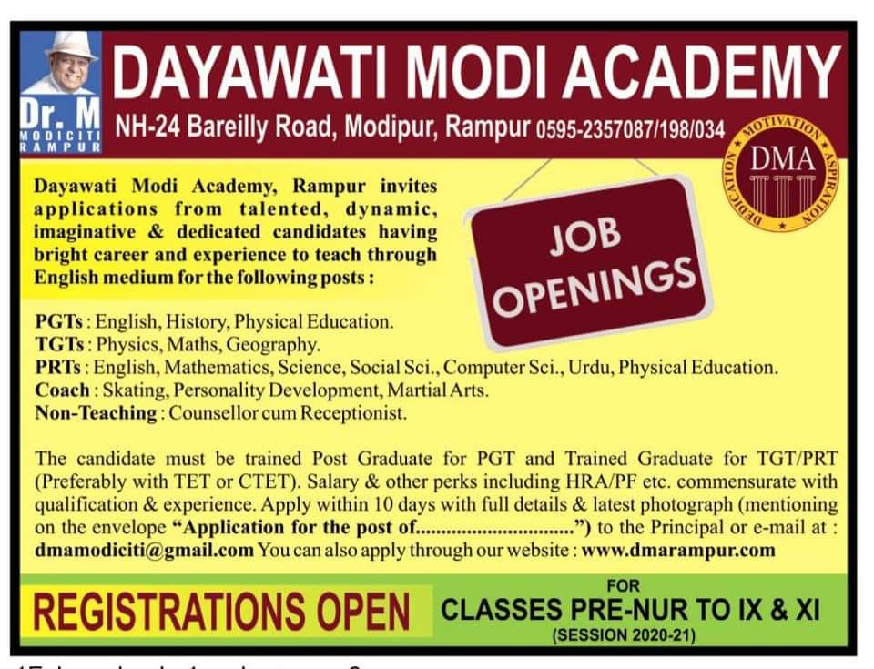 Founded in 1981, sprawling over an area of 8 acres with 4130 students and 129 teachers, DMA is a premier English Medium Co – Educational institute affiliated to CBSE, New Delhi. The Academy has been progressing by leaps and bounds, providing comprehensive quality education to develop the varied facets of a child’s personality and character through a good repertoire of scholastic and co- scholastic activities. The school endeavors not only to tap and nurture the latent talent and potential of the students but also evolve them into confident, self potent global citizens so that they face life courageously and positively in all its vividness and versatility. We in DMA, believe in continuous growth and never say no to openness, excellence and exploration. The future beckons us with many more peaks yet to be scaled. “The very spring and root of honesty and virtue lie in the felicity of lighting on good education.”